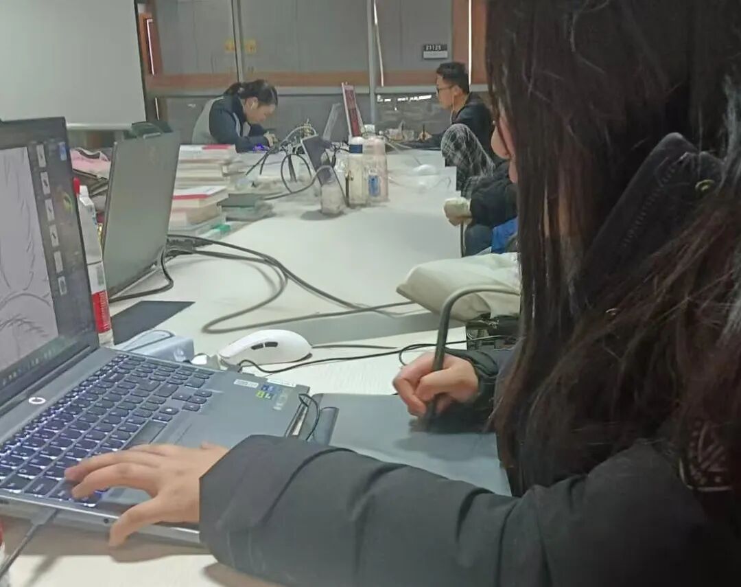 假期初入产业实践,对知识在实际中的应用把握不够,因人物动态、分镜逻辑问题让我感到挫败,在老师的细致指导下,我学会用线条表现人物情绪、用分镜节奏带动阅读感。与学长学姐协作赶稿、探讨创作的过程,让我明白漫画是反复打磨与热爱的凝结,也更加坚定了漫画创作的道路。