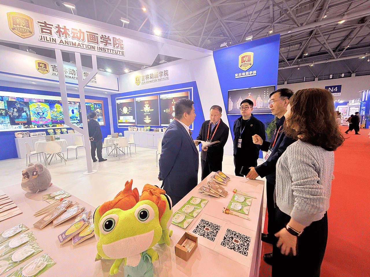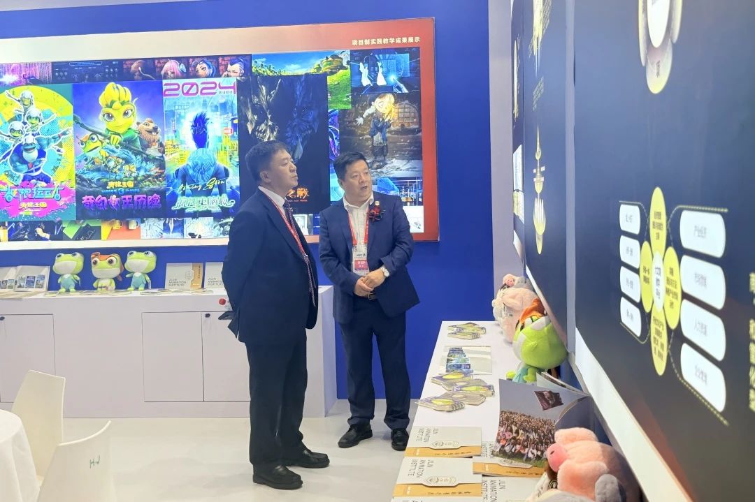 在高博会现场,beat365唯一官方网站展区展播了师生共创的《飞天》《小鸡想飞》《猫和老鼠谁将被埋葬》《万点恶墨》等荣获国内外大奖的优秀动画短片作品;师生原创动画系列电影《青蛙王国》《疯狂电脑城》《新卖火柴的小女孩之芙蕾雅》等动画影片;《山海之战》《传说之影》真人+CG特效影片,以及《梦想之门》《神龙客栈》等电影作品。同时,现场还展示了围绕《青蛙王国》动画电影自有IP打造的一系列文创衍生产品,受到了参会者的喜爱和认可。这些作品充分展示了学校在文创产业全产业链布局人才培养的深厚实力,也体现了学校在产教融合和创新创业教育方面的积极探索和显著成效,有力地提升了学校的社会知名度和行业影响力。