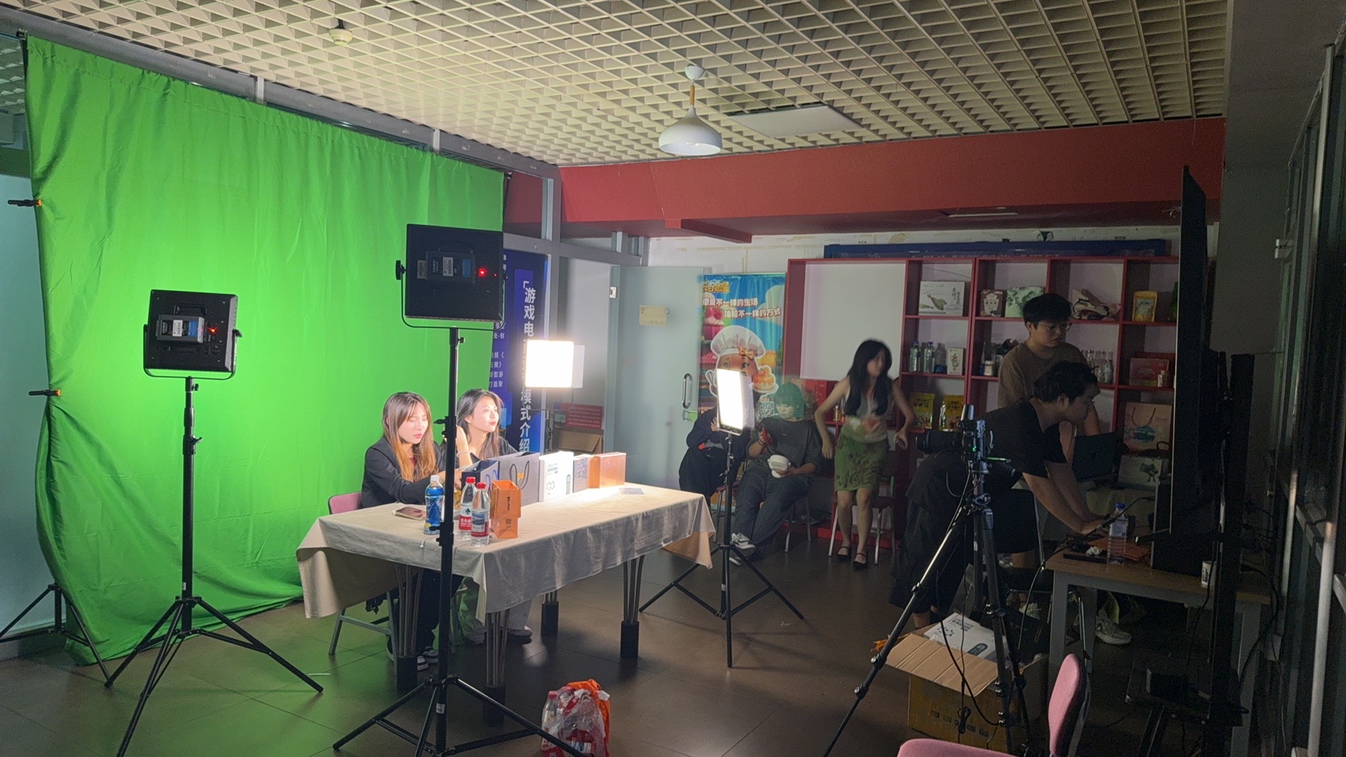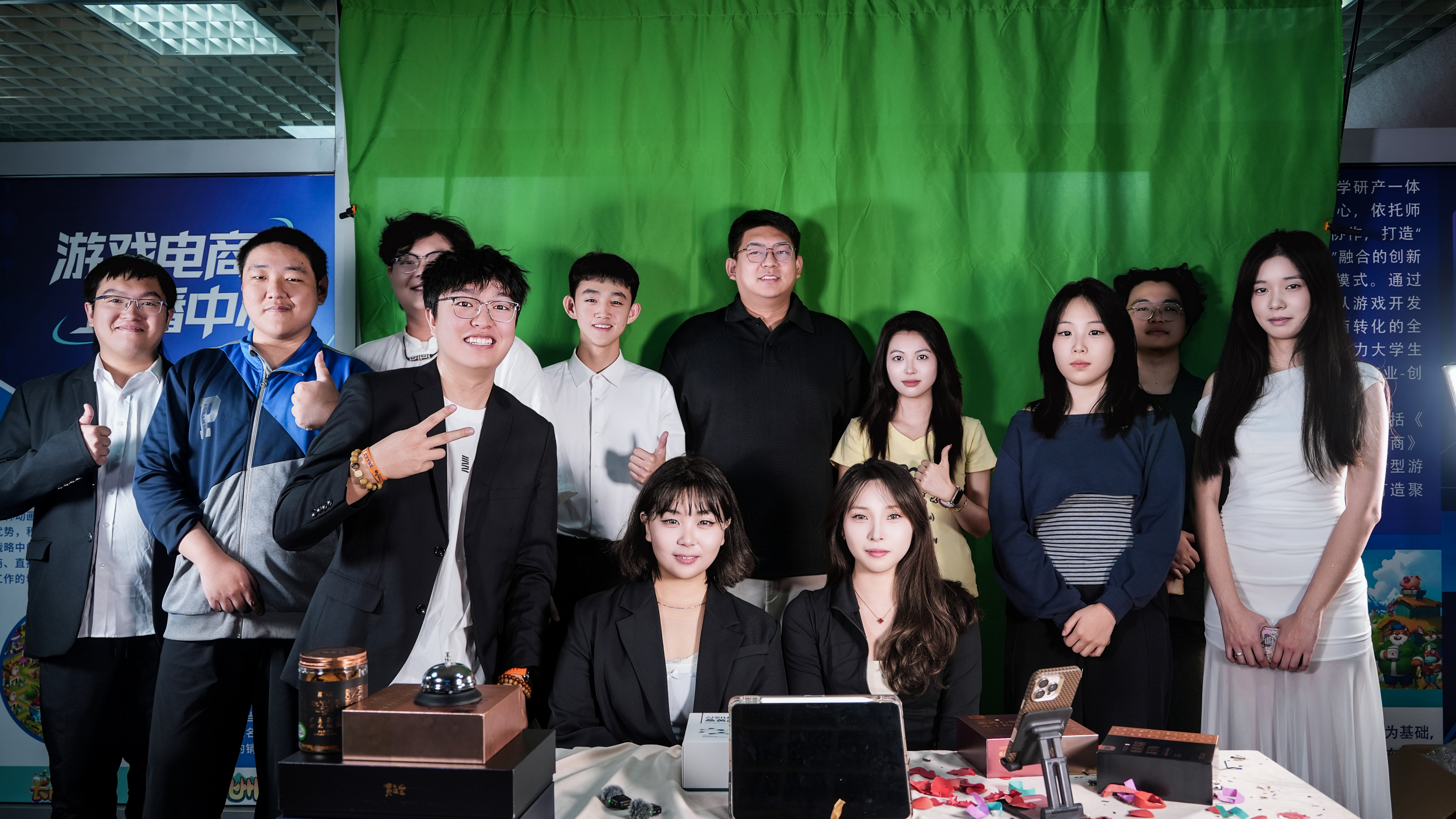 团队进行直播演示及合影