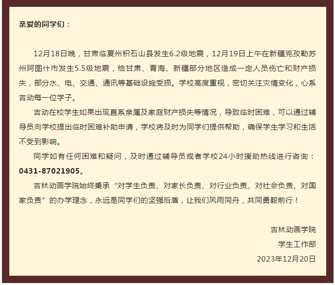 致甘肃、新疆、青海地震灾区受灾学生的一封信