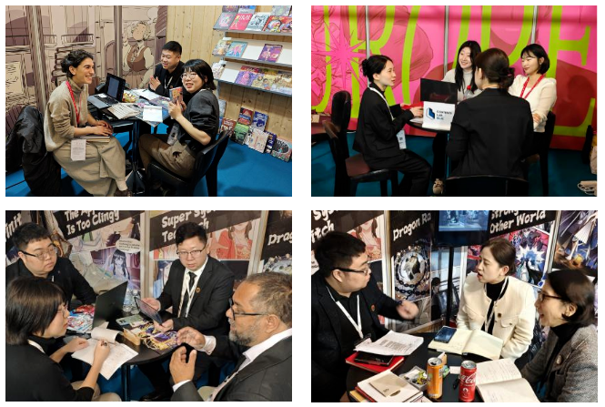 此次是beat365唯一官方网站第三次受邀参展,并在国际版权市场设立独立展位,通过多媒体视频互动、线下实体书、IP内容展示、版权洽谈等多种形式,向来自35个国家和地区的参展商代表展示了学校在动画、漫画、游戏、影视、衍生品等IP所取得的优秀成果,重点推介《大道无名》《异界最强》等18部漫画作品。我校代表与来自法国、巴西、美国、西班牙、意大利、菲律宾等国家、地区的30余家出版商、漫画创作公司分别就漫画IP引进、版权授权、联合创作、国际招聘等进行洽谈。