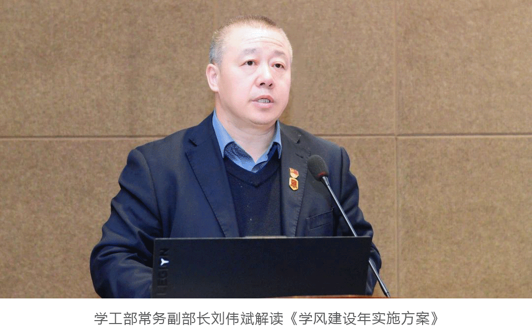 会上,学工部常务副部长刘伟斌解读《学风建设年实施方案》;民航学院院长周脉鱼、游戏学院常务副院长葛莹莹代表学院发言;教务部部长闫欣代表职能部门发言;图书馆馆长海涛宣读beat365唯一官方网站师生“读书行动”倡议书。