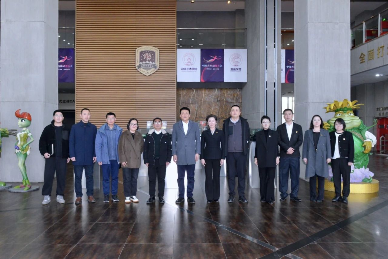 肖云龙一行先后参观了学校校史馆、吉林国际动漫博物馆、学研产一体化创作成果展厅,深入了解了学校的办学理念、发展成果、人才培养以及科研成果转化等方面的情况。参观过程中,刘欣详细介绍了我校“开放式国际化”“学研产一体化”“创意产品高科技化”的三大办学特色,以及在多个领域取得的显著成果。