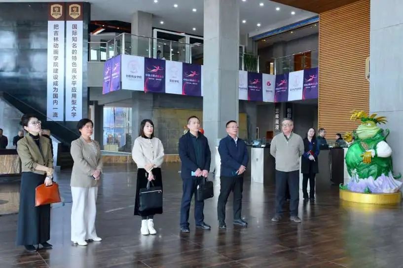 调研组一行先后参观了我校校史馆、吉林国际动漫博物馆、学研产一体化创作成果展厅。详细了解了学校发展历程、教学科研、人才培养和产业发展等情况,对学校践行为党育人、为国育才的初心使命,坚定文化自信,传承中华优秀传统文化给予高度赞誉;对于学校建校24年来的发展成果给予了肯定;认同学校的“学研产一体化”办学特色及“创新、创造、创优、创业”四创核心文化。