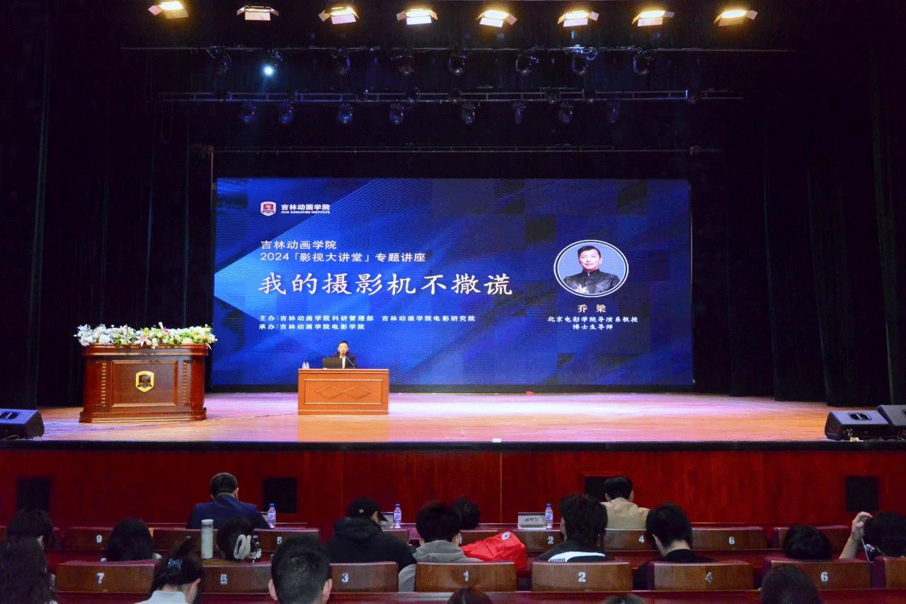 讲座中,乔梁结合其执导的电影《追月》,与在场的师生讲授并分享了剧本创作的过程和重要性,导演所应具备的职业素养和专业能力。关于剧本,乔梁认为:导演应与编剧紧密“相拥”,才能创作出丰满、真实、独特且具有深厚内涵的故事情节,电影专业的师生要培养有“变文字思维为影视思维”的能力。关于拍摄,他强调,导演要遵从自己内心最真实的感受,将自己最想表达的思想和语言传达给观众。这种表达的欲望必须是呼之欲出、无比强烈,只有这样,文字才能跃然纸上,画面才能真实生动,一部激情四射的优秀作品才能诞生。同时,电影要敢于运用独特视听手段,不断创新。关于演员,“导演选对演员是成功的一半”乔梁如是说。《追月》的成功,与何赛飞老师塑造的女性形象打破常规、鲜活立体密不可分。“导演靠什么赢得演员?就是你的专业度。演员相信你,你在他面前就是一面镜子。”乔梁导演妙语连珠,以轻松流畅的语言和同学们分享着他的个人感悟与成功经验。