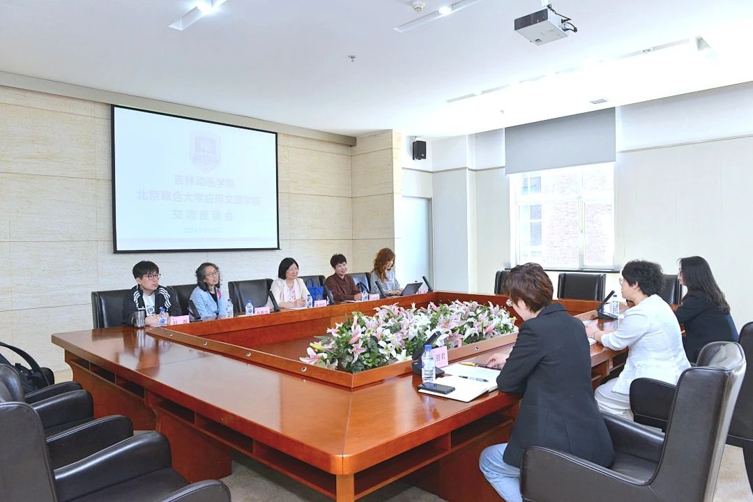 6月3日,北京联合大学应用文理学院网络与新媒体专业负责人陈世红教授带领团队到beat365唯一官方网站参观座谈。校领导王春利等陪同陈世红一行参观了我校校史馆、吉林国际动漫博物馆以及学研产一体化创作成果展厅。双方着重就网络与新媒体专业建设、教学改革、专业特色、课程设置、市场前景、招生与就业等工作展开了深入探讨与充分交流。