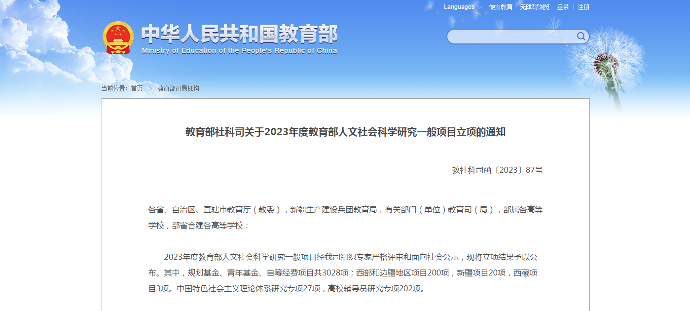 教育部人文社会科学研究项目是教育部面向全国普通高等学校设立的人文社会科学研究项目,其覆盖面广、影响大,具有重要的示范和引导作用,是各高校竞争和关注的焦点之一。