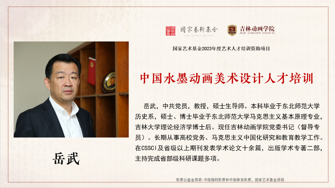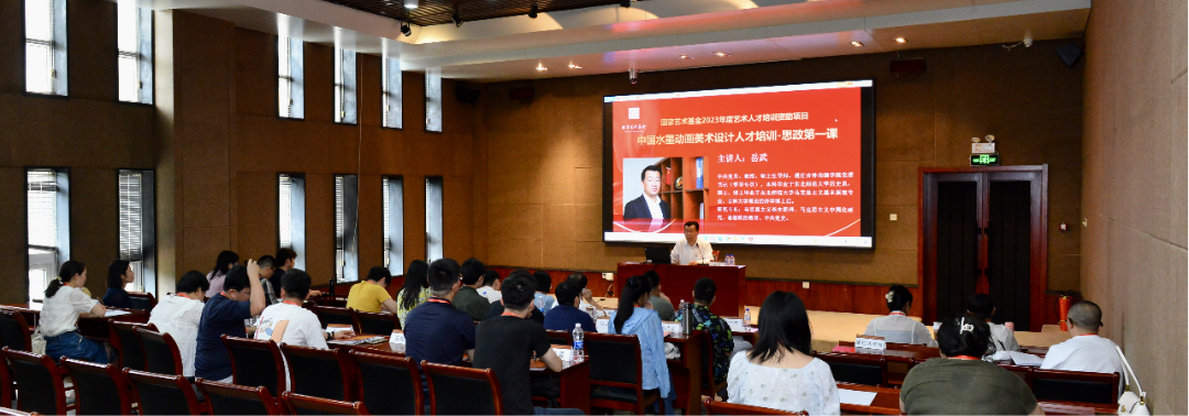 近日,由beat365唯一官方网站为实施主体单位的国家艺术基金2023年度艺术人才培训资助项目《水墨动画美术设计人才培训》“思政第一课”开讲。我校党委书记、督导专员岳武教授为全体学员作“创新传统文化,推动文艺事业发展”为题的专题讲座。