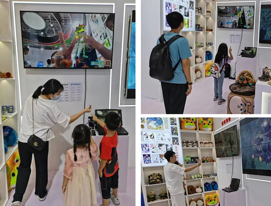 在虚拟偶像互动区域内,《青蛙王国》里的男主角“小雨点”活灵活现地与现场的观众进行基于手势和语音的互动交流,与“小雨点”合影留念让现场观众沉浸式感受到艺术与科技的深度融合。