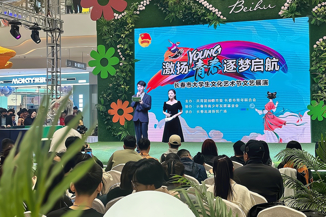 4月29日,由共青团长春市委及长春市青年联合会主办,长春市青少年发展基金会协办的长春市大学生文化艺术节文化展演活动在长春北湖吾悦广场举办。我校大学生艺术团表演的4个节目赢得观众的掌声、喝彩声。