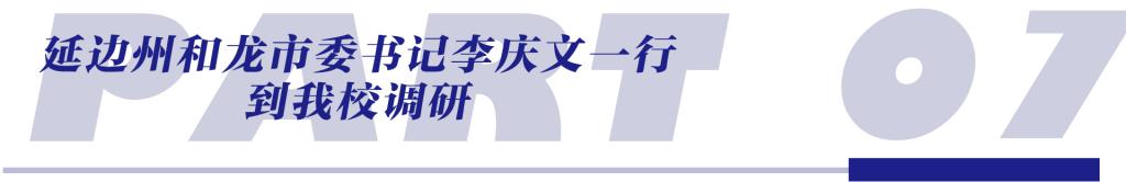 5月5日,延边州和龙市委书记李庆文,市委常委、常务副市长张韶光一行到我校调研,详细了解学校发展历程、教育教学以及创新创业情况。校领导蒋平、郑立军、彭巍等陪同调研。