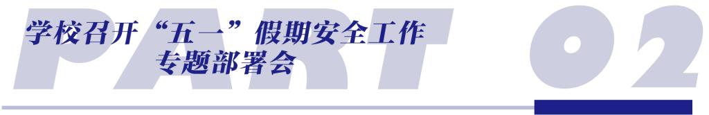 4月28日,学校董事长、校长郑立国主持召开专题会议,强调切实做好“五一”假期师生安全工作,杜绝各类安全事故发生。随后,党委书记、督导专员岳武召开“五一”假期安全工作部署会,校领导张砚为、盖世蕊,以及各学院、相关部门负责人参加会议。