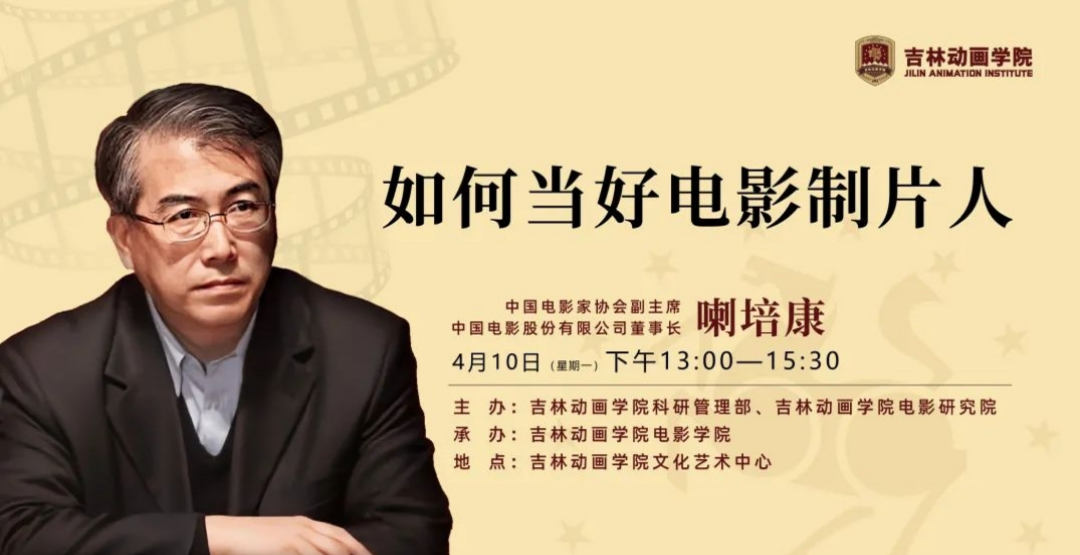 4月10日,中国电影家协会副主席,中国电影股份有限公司原董事长喇培康莅临beat365唯一官方网站,在吉动文化艺术中心为吉动师生做了题为“电影与电影产业”与“如何当好电影制片人”两场讲座。