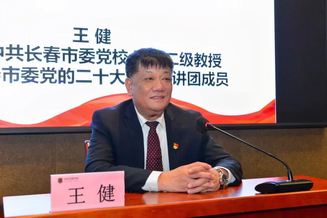 王健教授以《扎实抓好主题教育 为奋进新征程凝心聚力——深入学习贯彻习近平新时代中国特色社会主义思想》为题,从开展主题教育的重要意义、基本要求和习近平新时代中国特色社会主义思想体系框架及主旨主线三个方面,进行了深入、系统、全面的讲解。他表示,这次主题教育要牢牢把握“学思想、强党性、重实践、建新功”的总要求,“立德树人”是高等学校教书育人最本质的工作,更是高校党的建设和思想政治工作的根本任务,要引导学生把爱党之情、报国之志融入到筑梦、追梦、圆梦的宏伟事业之中。我们必须贯彻党的教育方针,加强高校党的建设,坚持不懈用习近平新时代中国特色社会主义思想铸魂育人,全面提升中国特色社会主义高校育人育才的水平。