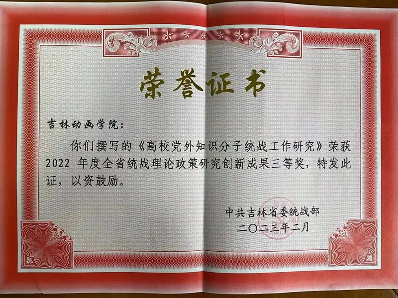 2月9日上午,全省统战部长会议在长春召开。省委常委、省委统战部部长吴海英出席会议并讲话。会议对2022年度全省统战理论政策研究创新成果获奖单位进行表彰,我校党委统战部申报的工作成果“高校党外知识分子统战工作研究”获得三等奖。是该项目获奖单位中唯一一所民办院校。