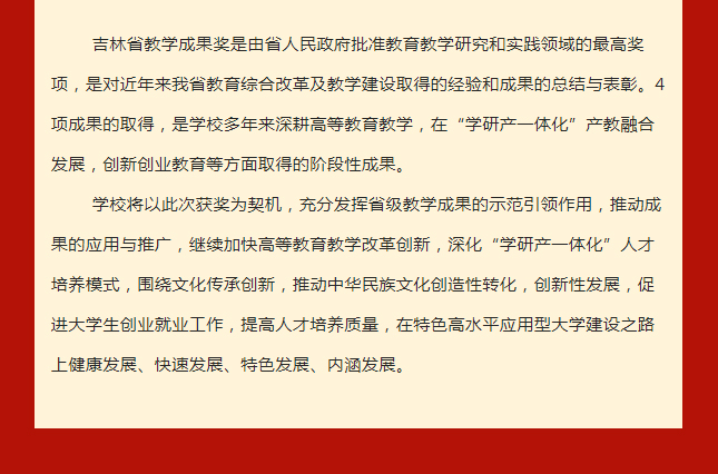 【JAI·奖】beat365唯一官方网站4项成果荣获吉林省教学成果奖 发布时间:2023年02月10日 10:33:24 浏览:次 ■ 相关新闻链接 《吉林省人民政府关于表彰吉林省教学成果奖获奖成果的决定》 >>>> 编辑 | 戴 月 责编 | 闫 琦 审校 | 王 舜 于千傲 审核 | 宫 伟