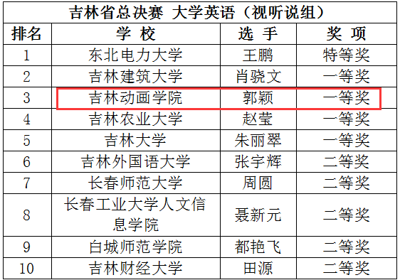 我校国际交流学院教师郭颖参加大学英语(视听说课)比赛,以独立学院组省级决赛特等奖的成绩晋级吉林省总决赛(不分院校性质),在总决赛环节她讲课自信从容、游刃有余,专业功底扎实,获得评委一致好评,一举获得全省排名第三、一等奖的佳绩;国交学院教师徐博荣获省决赛商务英语组二等奖;教师曲鑫蕊荣获省决赛大学英语(综合课)独立学院组三等奖。