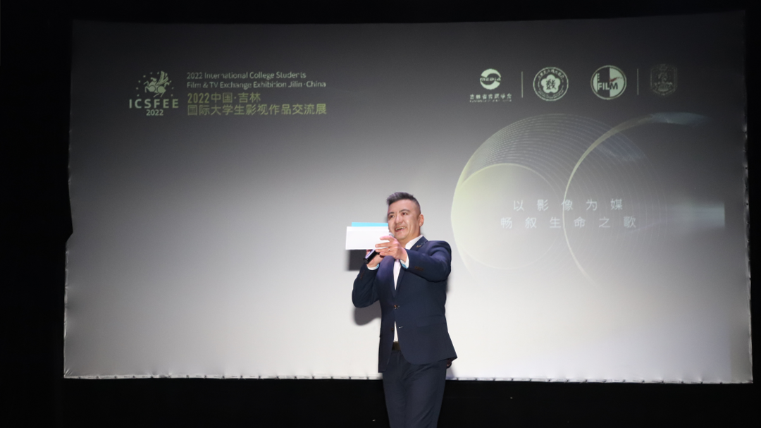 【JAI·展】国际大学生影视作品展映会在beat365唯一官方网站举办 发布时间:2022年11月08日 12:28:00 浏览:次 10月29日,2022中国·吉林国际大学生影视作品交流展.展映会在beat365唯一官方网站F楼青春剧场拉开帷幕。包括电影学院师生在内约400余人次在线上线下参加展映会。展映会由电影学院教师许云帆主持。本次展映会是吉林省传媒学会2022年年会的议程之一,部分传媒学会的专家学者在线上观摩了展映活动。 ▲电影学院青年教师许云帆主持展映会