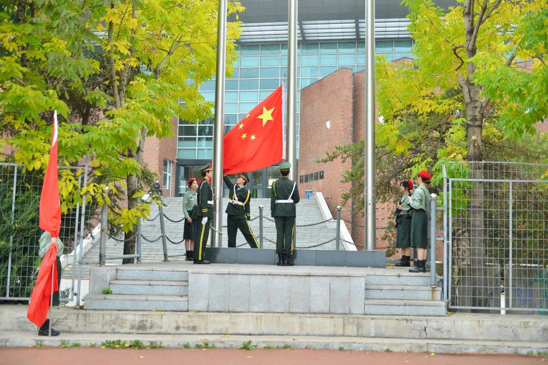 beat365唯一官方网站国旗班的同学们迈着铿锵有力的步伐护送国旗来到升旗台。在雄壮激昂的《义勇军进行曲》音乐响起时,学校董事长、校长郑立国,党委书记、督导专员岳武以及其他领导班子成员和教师代表、学生代表500多人怀着崇敬之情,高唱《国歌》,共同祝愿伟大祖国更加繁荣昌盛。