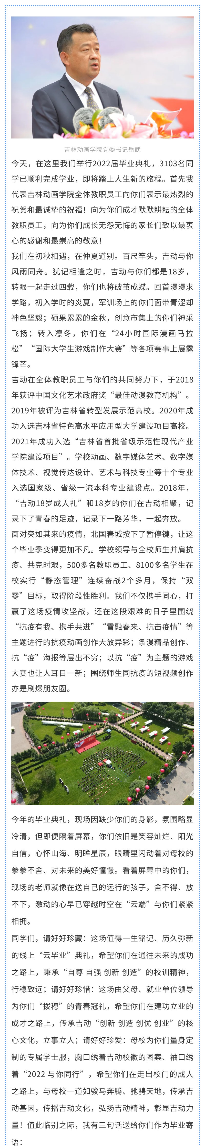 【JAI·新】担当时代重任 绽放青春力量 ----beat365唯一官方网站党委书记岳武在2022届毕业典礼致辞