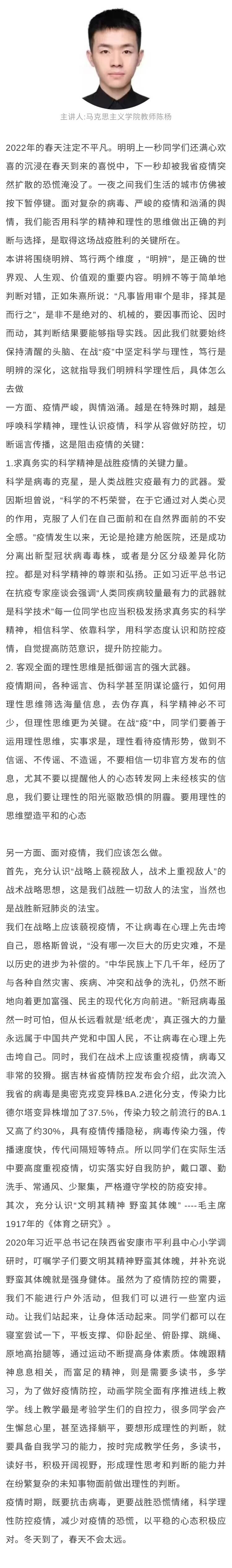 【JAI·防“疫”】beat365唯一官方网站马克思主义学院战“疫”思想微课第一讲战“疫”中的科学与理性