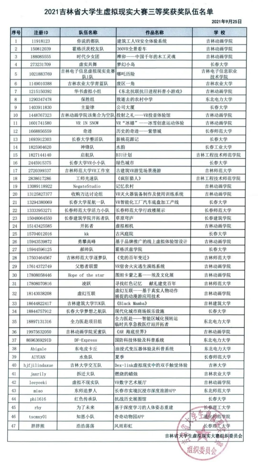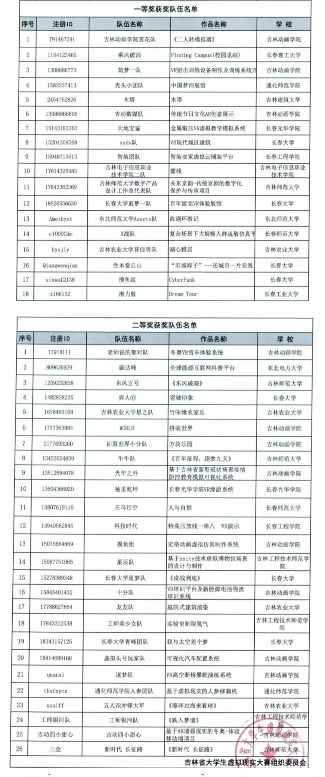 据了解,本届赛事以专家线下集中、参赛队伍线上答辩形式评审。最终评出《2021吉林省大学生虚拟现实大赛特等、一等、二等奖获奖队伍名单》。