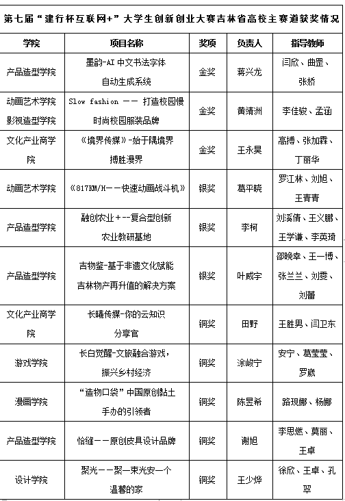 第七届吉林省“互联网+”大学生创新创业大赛beat365唯一官方网站省赛获奖信息
