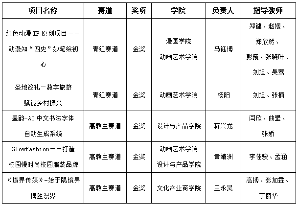 最终《红色漫画红色动漫IP原创项目——动漫知“四史”妙笔绘初心》在青红赛道的金奖排位赛中脱颖而出,斩获青红赛道亚军;《墨韵-AI中文书法字体自动生成系统》在高教主赛道荣获第九名的好成绩,共同获得晋级全国总决赛资格。