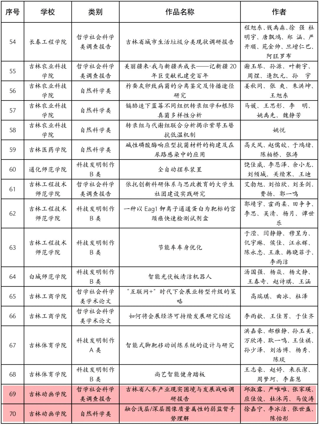 近日,由共青团吉林省委员会、吉林省教育厅、吉林省科学技术协会、吉林省学生联合会共同主办的2021年“挑战杯”吉林省大学生课外学术科技作品竞赛终审决赛在长春中医药大学落下帷幕。我校参赛作品在本次大赛中获得二等奖4项、三等奖8项的优异成绩,首次参赛即获得12项省级赛事奖项。