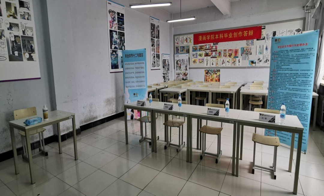 为了保证毕业答辩工作的顺利进行,各学院前期进行了全面充分的研究和部署,毕业论文(创作、设计)工作领导小组召开答辩工作会议,明确答辩要求,统一成绩评定标准,审阅创作(论文)、进行盲评、指导答辩汇报PPT、开展复制比检测、审核答辩资格、开展答辩教育,答辩前各学院精心布置答辩现场,制作宣传海报和条幅,张贴“毕业环节十二字箴言”,做好疫情安全防控,消毒物品、口罩等准备的一应俱全。