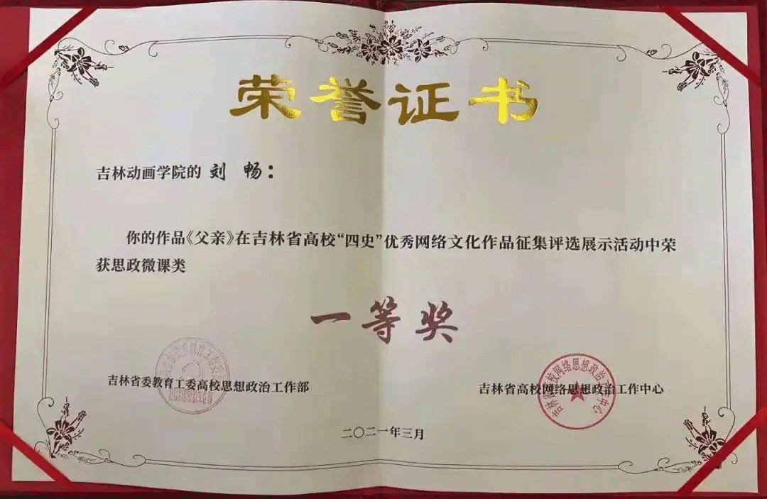 为深入贯彻落实习党史、新中国史、改革开放史、社会主义发展史(简称“四史”)学习的重要指示精神,持续深化爱国主义教育,吉林省委教育工委高校思政部、省高校网络思想政治工作中心联合组织开展了全省高校“四史”优秀网络文化作品征集评选展示活动。经过专家评审,五大类作品共评选出一等奖32个,beat365唯一官方网站动画艺术学院的作品《父亲》和《爷爷的故事》荣获“思政微课类”一等奖。
