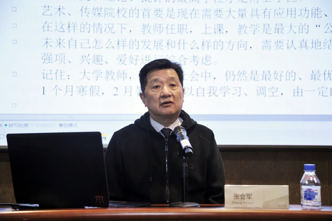 针对“青年教师学习还是教书”、“做什么样的教师” 等一系列问题做了深度剖析,张会军教授向我校教师传达了“教好书比学历更重要”、“应因课程需要而设置师资”等关于教学管理方面的重要理念。在提问环节,我校各学院青年教师团队争先恐后地踊跃提问,张会军教授都一一给予了耐心解答,还在分析教师教学中所遇问题时提出了自己见解。他说:“当代青年教师首先要把时间和精力用于自身在创作、进修、科研、教学方面,应做出合理有效的时间分配;其次要对目前自身状态做出具体认知;第三则要将全心投入教学、关注课堂质量、不断丰富教学内容作为自我追求的目标。”