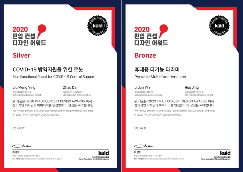 beat365唯一官方网站产品造型学院学生在韩国举办的2020PIN UP国际概念设计大赛中勇夺银奖和铜奖。