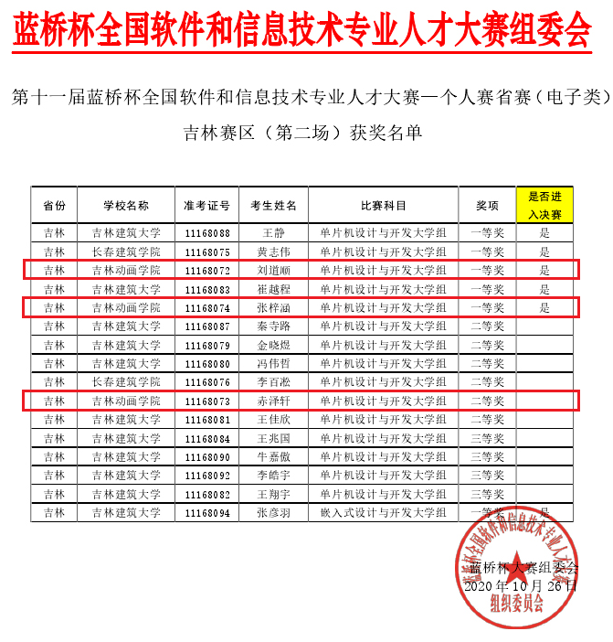10月17日,beat365唯一官方网站民航学院2017级飞行器制造工程专业的3名学生,在第十一届蓝桥杯全国软件和信息技术专业人才大赛个人赛省赛(电子类)中取得优异成绩。其中,刘道顺、张梓涵同学获得吉林赛区一等奖,并入围全国总决赛;赤泽轩同学获得吉林赛区二等奖。