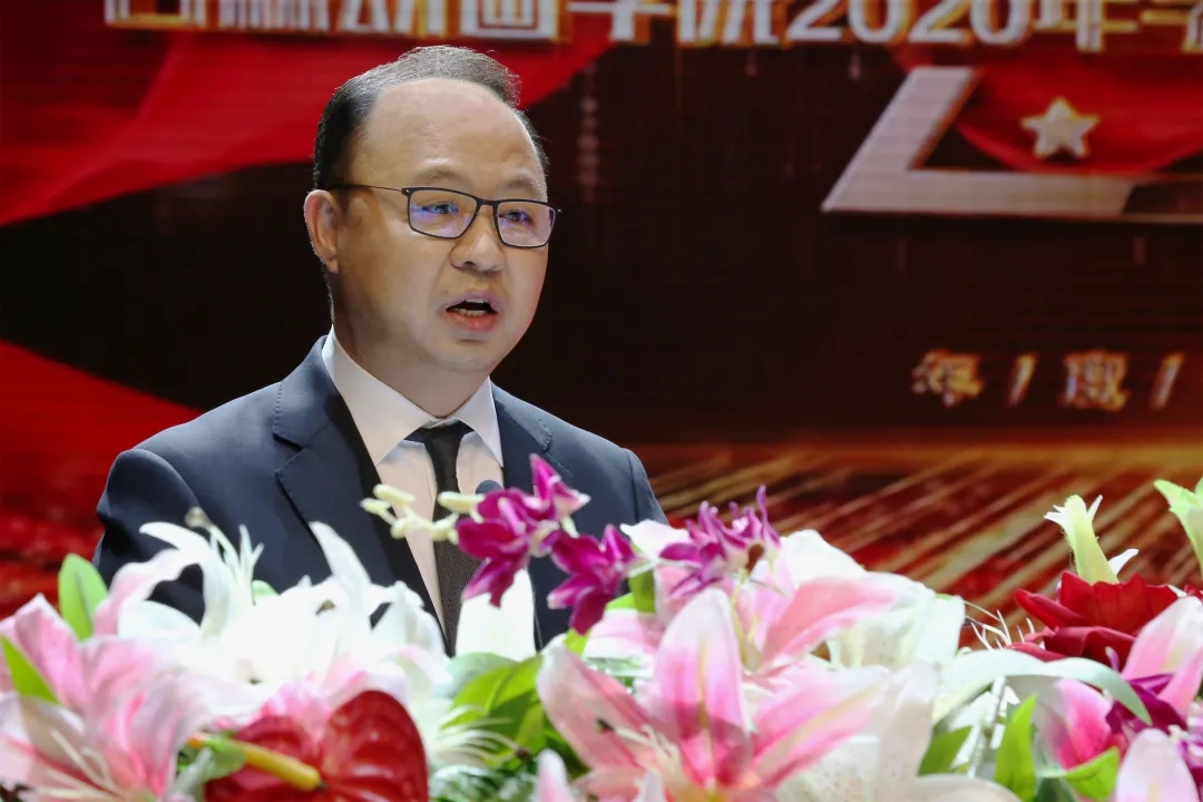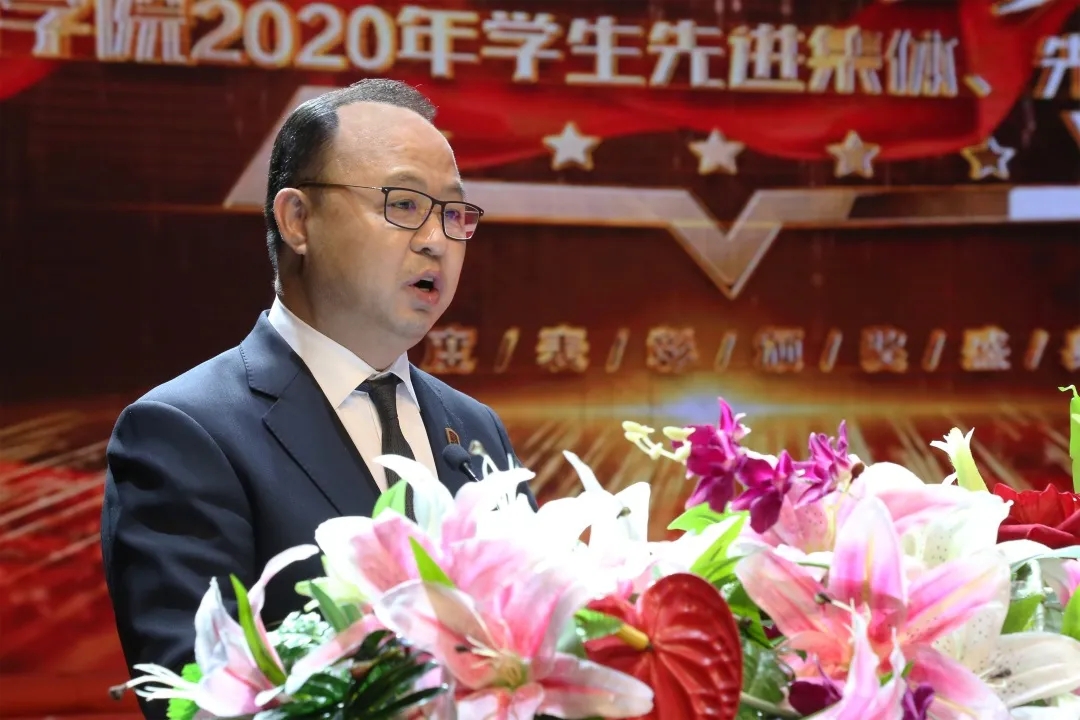 ▲beat365唯一官方网站董事长、校长郑立国在2020年学生先进集体、先进个人表彰大会作题为“正青春的能量、正能量的青春” 的讲话