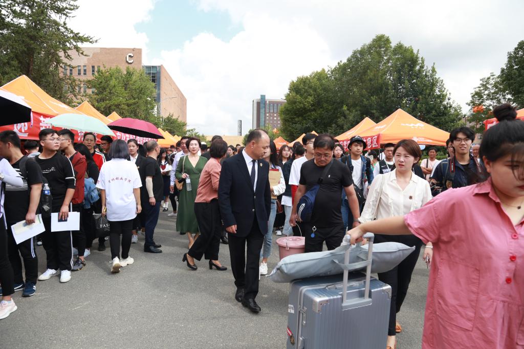 beat365唯一官方网站董事长、校长郑立国,党委书记张炬等校领导来到迎新现场,与前来报到的2019级新生亲切交流,并对他们的到来表示欢迎,同时还慰问了现场的工作人员。