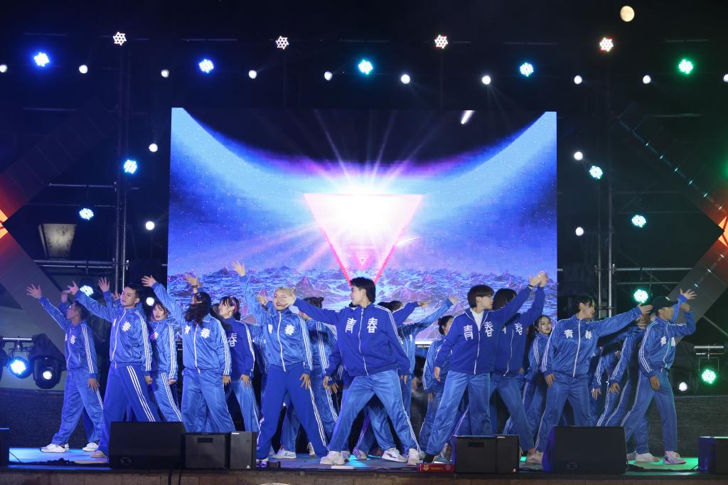 夜幕降临,华灯初上。伴随着青春激荡的乐曲,由大学生艺术团表演的舞蹈《致青春》拉开了晚会帷幕。