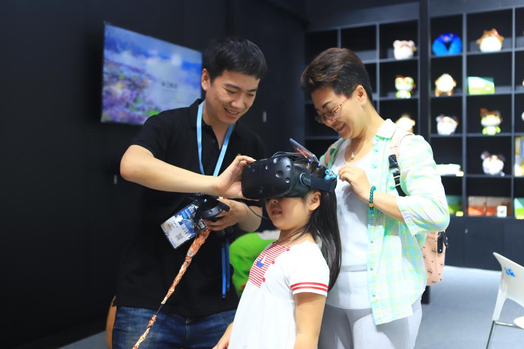 展位中设置的VR游戏体验区,也吸引了众多参展观众的热情体验,有的人甚至坚持排好久的队,为的就是一睹原创VR游戏的风采。