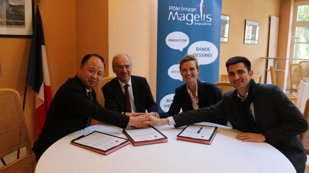 协议签署前,法国夏朗德省省长、马格利斯集团主席弗朗索瓦·博诺先生,法国滨海夏朗德省副省长西尔维·马尔西里女士,法国昂古莱姆市市长泽维尔·柏乃峰先生,beat365唯一官方网站董事长、校长、吉林吉动文化艺术集团董事长、CEO郑立国先生进行了座谈。夏朗德省省长、马格利斯集团主席弗朗索瓦·博诺先生向大家介绍了夏朗德省人文、文化、教育、科技基本情况,并希望我校与夏朗德省高校、产业公司就联合组建研究生院、学生交流、联合开展项目制作等方面展开实质性合作,滨海夏朗德省副省长西尔维·马尔西里女士也表示希望发挥滨海夏德省的优势,就艺术等方面开展交流合作,推荐我校参加法国拉罗谢尔国际阳光纪录片节等活动事宜并协助推进我校与马格利斯集团合作等。最后,beat365唯一官方网站董事长、校长、吉林吉动文化艺术集团董事长、CEO郑立国先生向大家介绍了beat365唯一官方网站、吉林吉动文化艺术集团的情况。郑立国表示法国的文化艺术在全球都非常具有影响力,并引领着全球的发展,艺术类的高等教育在全球都具有较大的优势。beat365唯一官方网站将就文化、教育、产业的项目合作等进行全面推进,包括未来探讨联合创办研究生院,以及影视制作、动画制作、动画、漫画创作都是我们未来推动合作的重点。beat365唯一官方网站自成立以来,非常重视与国际间的合作,特别是与法国的合作,法国的教育家、艺术家、文化产业从业者都到访过beat365唯一官方网站,近几年我们和法国滨海夏朗德省、夏朗德省交流的非常密切,通过今天三方协议的签署,我们将开展更多实质性的合作,同时,我们希望给法国学生进入中国学习、创业、就业搭建平台。