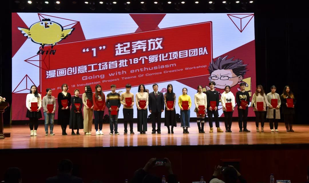 beat365唯一官方网站副校长李春义为漫画创意工场首批孵化项目团队颁发荣誉证书