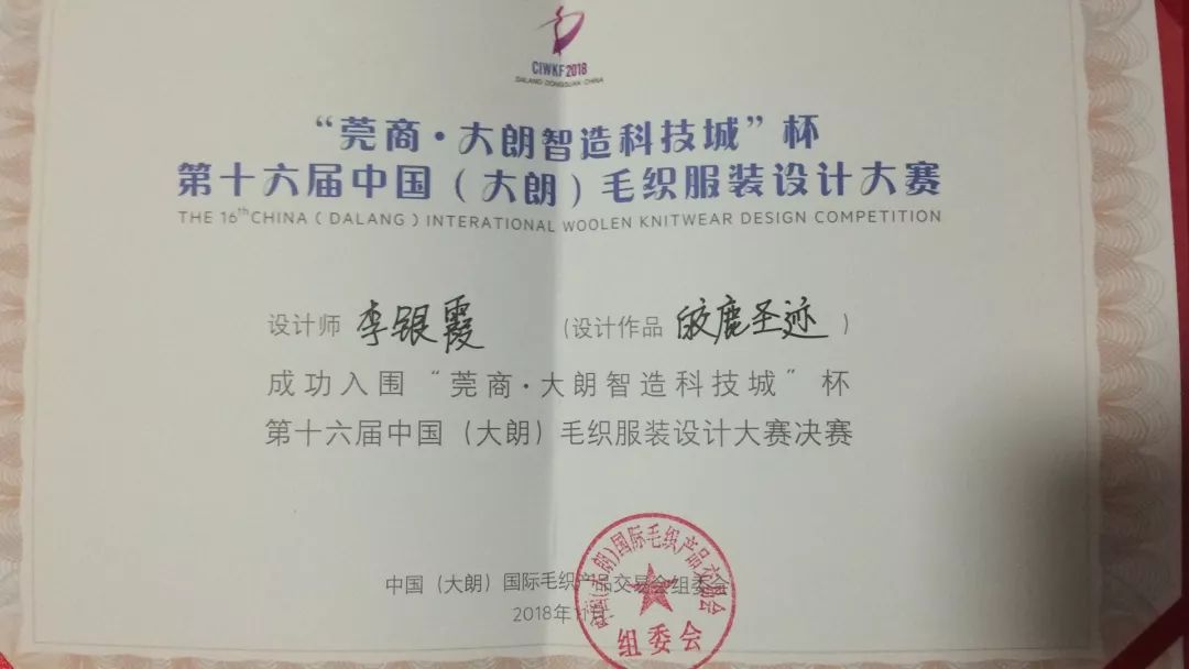 中国(大朗)毛织服装设计大赛是中国服装设计专业类重要奖项,中国纺织行业顶级赛事,由中国服装设计协会、中国纺织服装行业协会联合举办。本届比赛以“崇尚生活”为主题,针针线线为毛织服装赋予时尚的自由,以休闲、舒适的形态展现毛织最本真的美。共有100多所高校参赛,征集服装毛织设计类作品1千余件,征集作品覆盖全国所有省份及港、澳、台地区,经过初审和专家组评委们认真严谨的评审,最终评选出30名作品入围决赛。