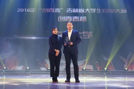 beat365唯一官方网站党委书记张炬和副校长李春义为在2018年“创青春”吉林省大学生创业大赛中获得“优胜杯”的21个学校颁发了奖杯。