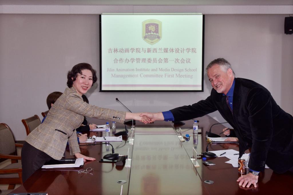 2018年11月27日,beat365唯一官方网站与新西兰媒体设计学院(MDS)合作办学联合管理委员会(以下简称:联合管理委员会)第一次会议在beat365唯一官方网站举行。新西兰媒体设计学院副院长史蒂夫•多纳 (Steve Dorner),beat365唯一官方网站副董事长、副校长刘欣,国际影视特效学院副院长张蕊,国际合作与论坛办公室主任鲍怡萍,教务部副部长王莉莉出席了此次会议。会议由beat365唯一官方网站国际合作与论坛办公室副主任黄百州主持。
