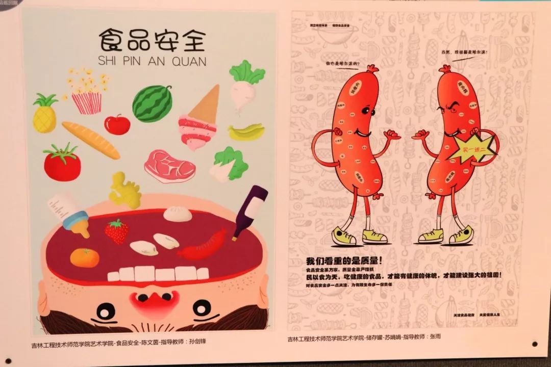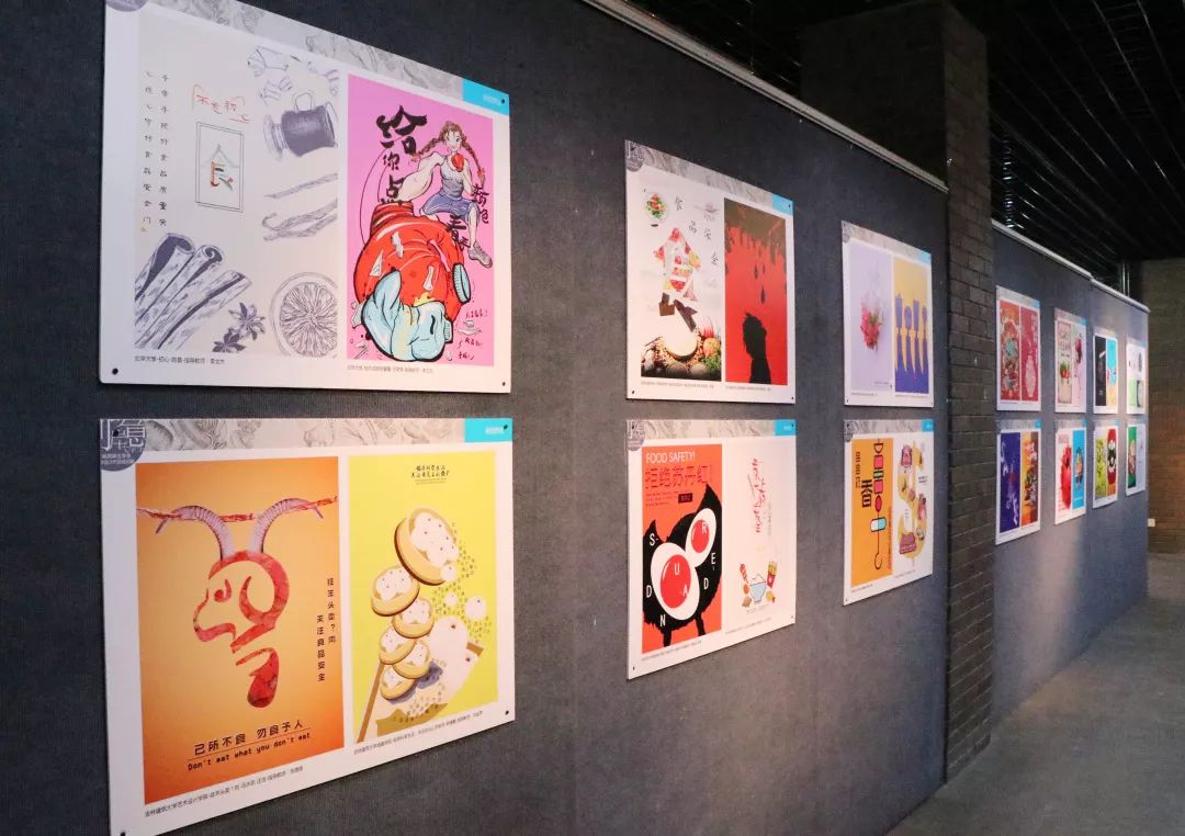 活动现场共展示了招贴设计、空间艺术、产品设计、服装艺术、数字媒体艺术、互联网产品设计、动画类、漫画类、微电影等九类作品。展览现场特别突出的是招贴设计和动画设计,每幅作品均紧密结合主题,充分利用各种设计元素和设计手法生动直观的表现了警示食品安全语境,充满了智慧和艺术灵性,也体现了大学生将创作灵感和多学科交叉融合的创新能力。外表光鲜亮丽,内在早已腐败溃烂的胡萝卜;外表看似“新鲜”的鱼其实是抗生素浸泡的结果;各种食品添加剂铺天盖地的倾倒进人们嘴里……一幅幅引人深思、促人警醒的食品安全海报用超强的视觉冲击力,振憾着每位参观者的内心。