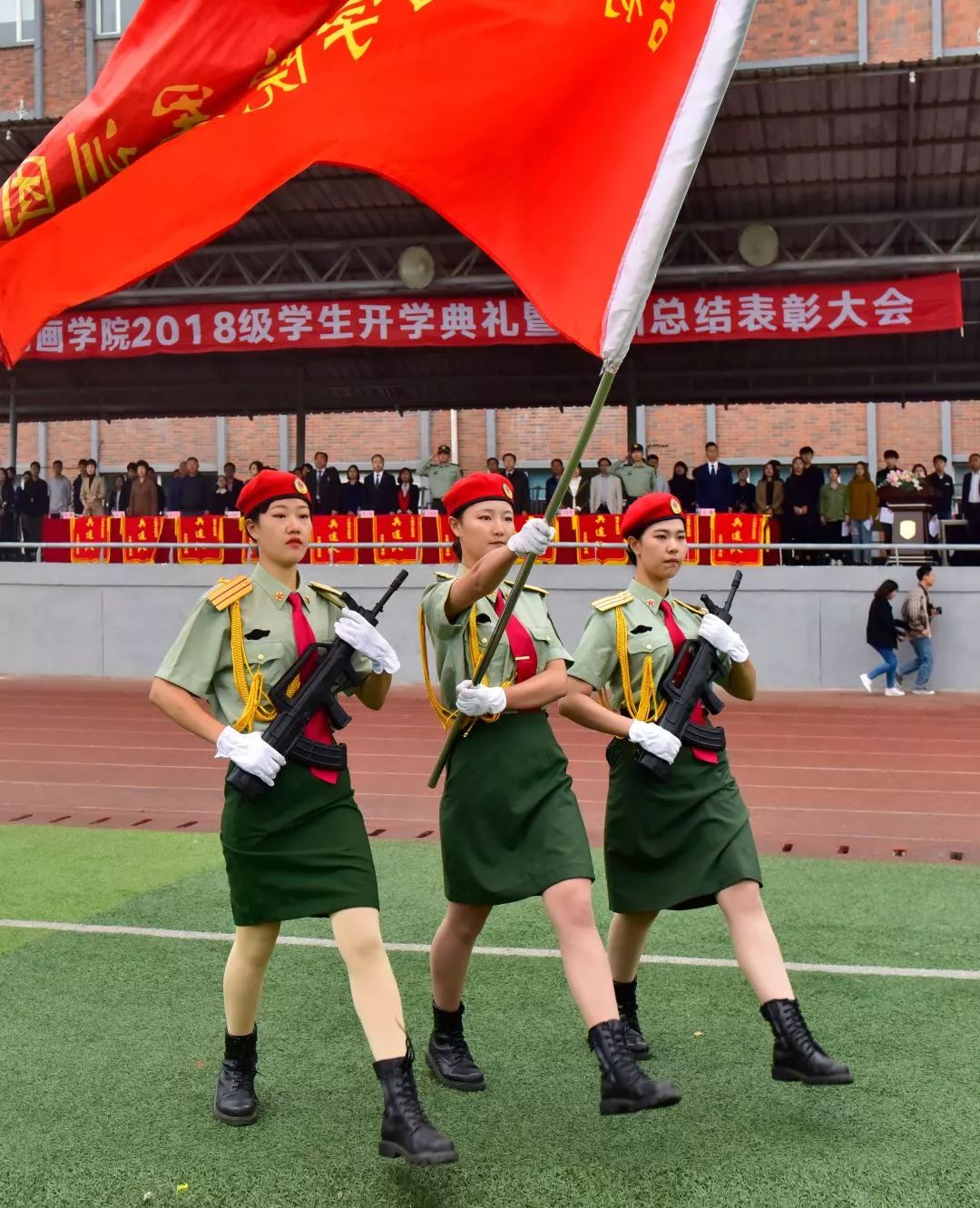 2018年9月21日上午9时,继吉动十八岁成人礼系列活动成功举办后,beat365唯一官方网站2018级新生开学典礼暨军训总结表彰大会在体育场隆重举行。