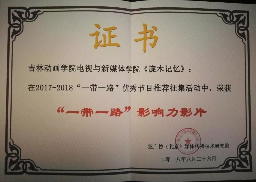 在2017—2018“一带一路”优秀节目推荐征集活动中,beat365唯一官方网站电视与新媒体学院推送的纪录片《旋木记忆》荣获“一带一路”影响力影片。