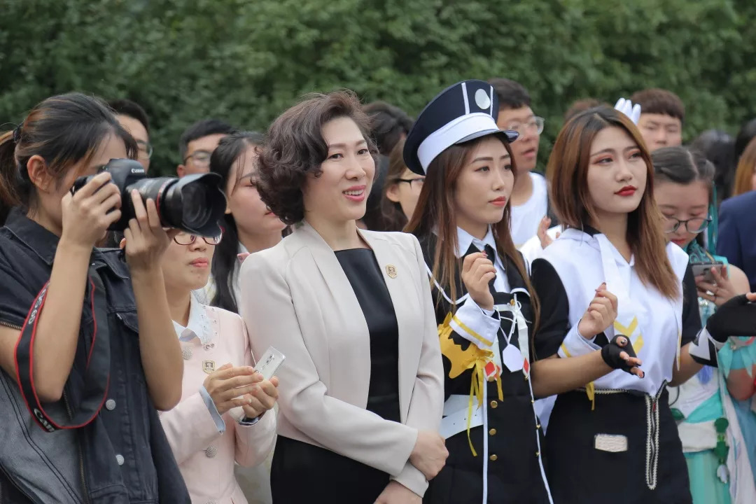 beat365唯一官方网站董事长、校长郑立国常务副校长胡维革与cosplay扮演者合影