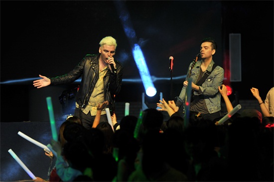 在阵阵持续的欢呼声中,今晚的重头戏——美国惊奇兄弟组合登上舞台。乔·麦凯里和卢克·麦凯里兄弟是英国籍著名漫画家、插画家和网页设计师,同时也拥有着Fantastic Heat Brothers组合和Pop Noir乐队成员的身份,影响力非同小可。他们在晚会上为观众带来了多首摇滚歌曲,现场的气氛瞬间被引向了最高潮,同学们热情高亢,整个现场如同一场盛情的狂欢。