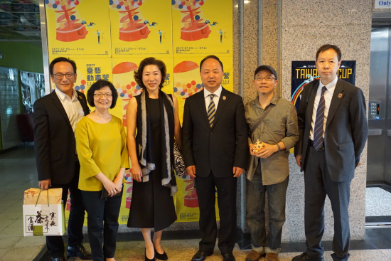 我校考察团与台湾艺术大学设计学院院长许杏蓉、多媒体动画艺术学系主任张维忠合影留念