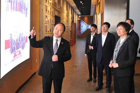 省委常委、宣传部部长王晓萍一行莅临我校考察调研,学校董事长、校长郑立国等人陪同考察(刘庆发 摄)